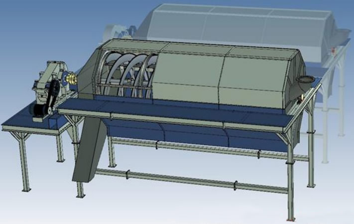 電動機經減速機與滾筒裝置通過聯軸器連接在一起,驅動滾筒裝置繞其軸線轉動。當物料進入滾筒裝置后,由于 滾筒裝置的傾斜與轉動,使篩面上的物料翻轉與滾動,使合格物料(篩下產品)經滾筒外圓的篩網排出,不合格的物料(篩上產品)經滾筒末端排出。由于物料在滾 筒內的翻轉、滾動,使卡在篩孔中的物料可被彈出,防止篩孔堵塞。滾筒篩' target='_blank'>滾筒篩砂機、滾筒篩分機與滾筒篩的原理構造幾乎相同,是人們對它的認識和叫法上存在差異。